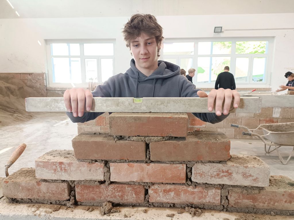 Im Rahmen der Vorstellung der Baulehre konnten die Jugendlichen verschiedene Arbeitsbereiche und moderne Technologien kennenlernen. Besonders beeindruckend waren die praktischen Stationen: Beim NF-Mauerwerk wurde präzises Arbeiten mit Ziegeln gezeigt, an der Doka X-light-Schalung durften die Schüler selbst Hand anlegen, und mit dem Kran sowie dem Bagger konnten sie eindrucksvolle Maschinen aus nächster Nähe erleben.